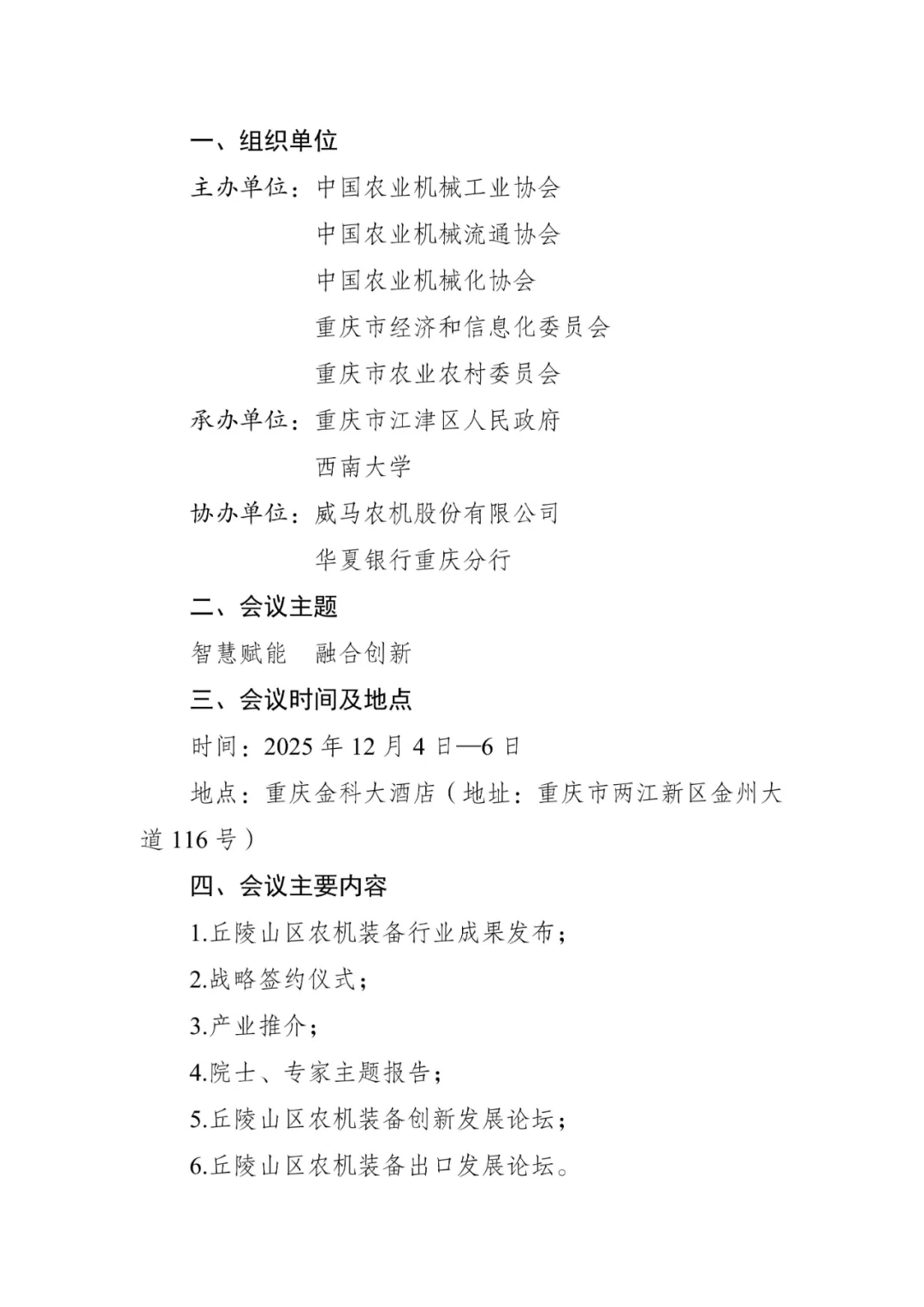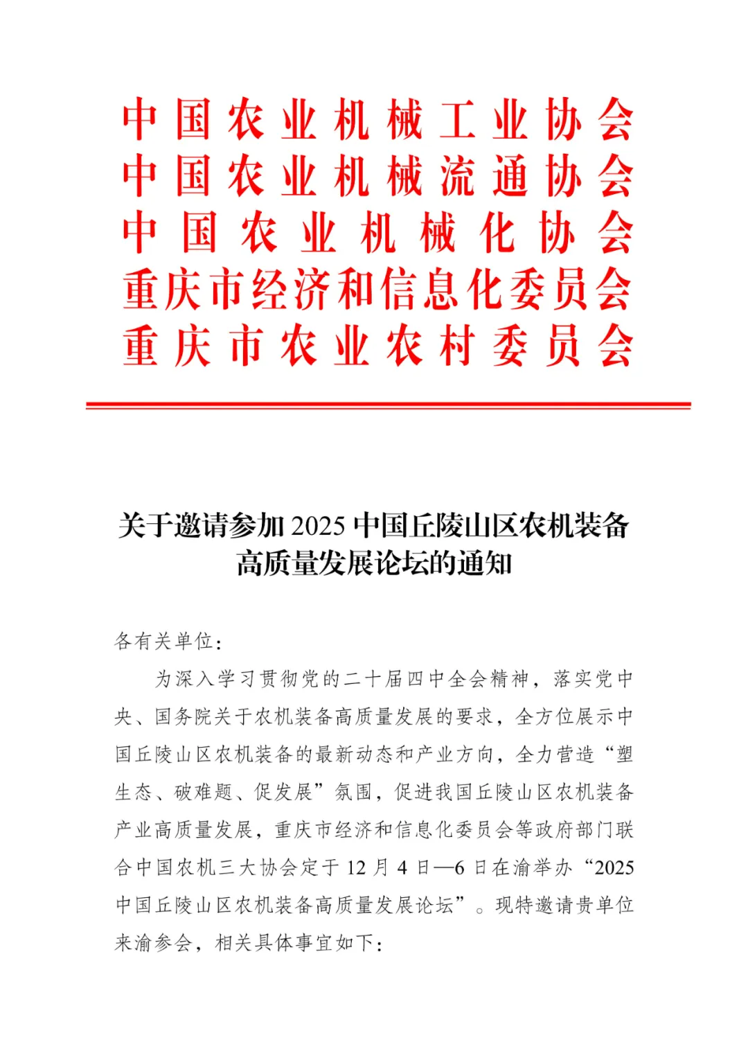 【通知】关于邀请参加 2025 中国丘陵山区农机装备高质量发展论坛的通知