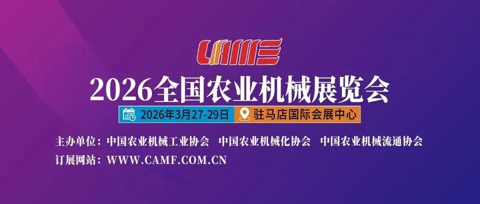 核心提示:由中国农业机械工业协会、中国农业机械化协会、中国农业机械流通协会共同主办的2026全国农业机械展览会(简称“全国农机展”)将于2026年3月27日至29日在河南驻马店国际会展中心举办。自招商启动以来,展会备受瞩目,截至发稿前,所有展位已全部售罄,充分彰显了春季农机市场的旺盛需求与展会的强大吸引力。